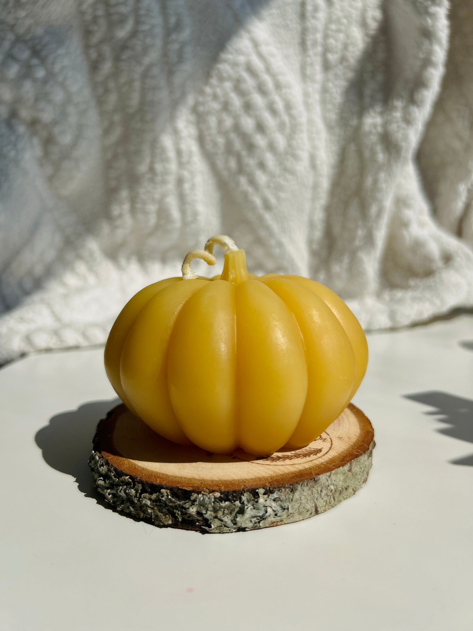 Elevate your autumn décor with our handcrafted all-natural beeswax pumpkin candle. Made 100% from pure beeswax that smells just like honey. We proudly pick up this all natural wax directly from beekeepers ourself. An eco-friendly candle that provides a clean, long-lasting burn with a subtle honey scent, perfect for creating a cozy and inviting atmosphere. Free from any added scents or dyes, this 100% purifies the air in your home.